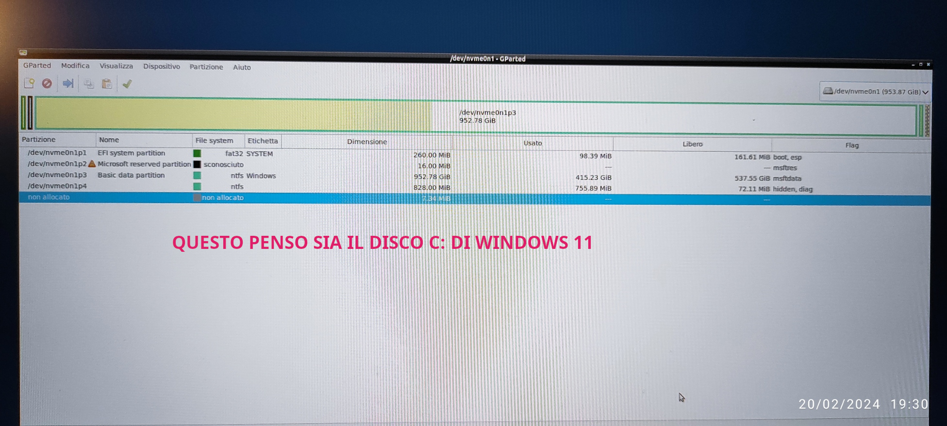 IMG_con Gparted secondo dei due 1TB 2