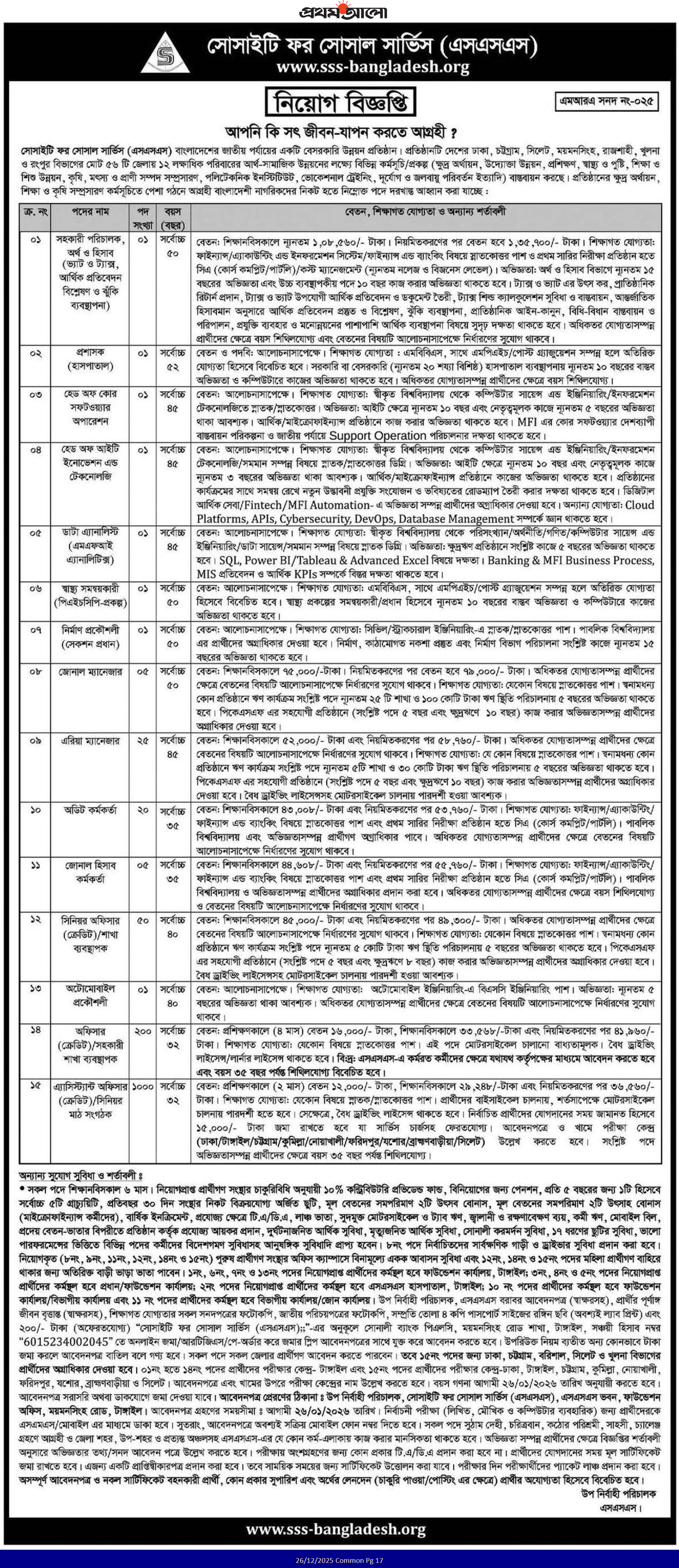 SSS NGO Job Circular 2025