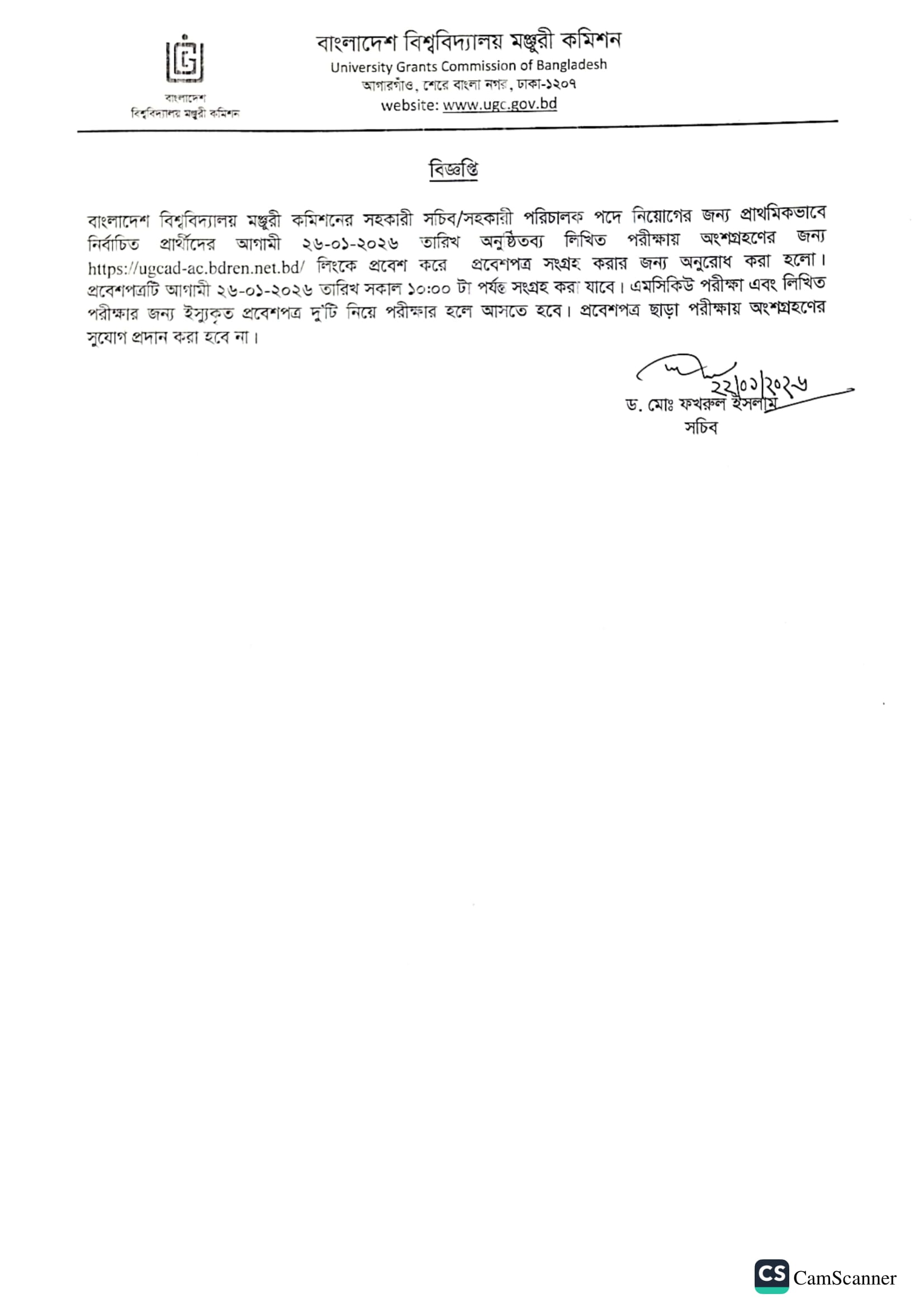 UGC AD Written Exam Admit Download 1