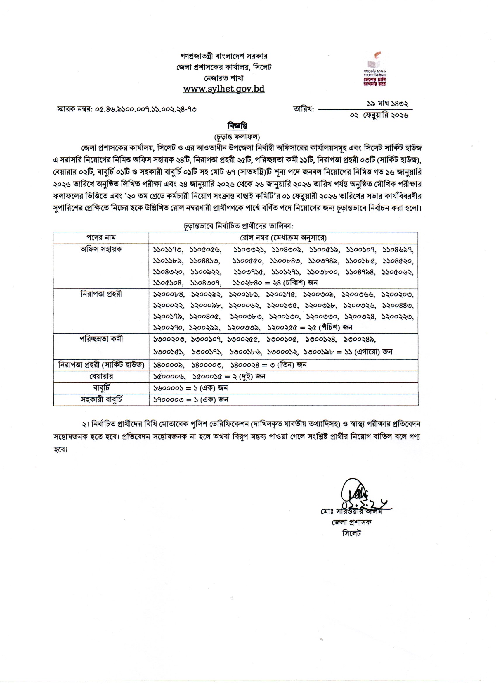 DC Office Sylhet Final Result 2026 PDF 1