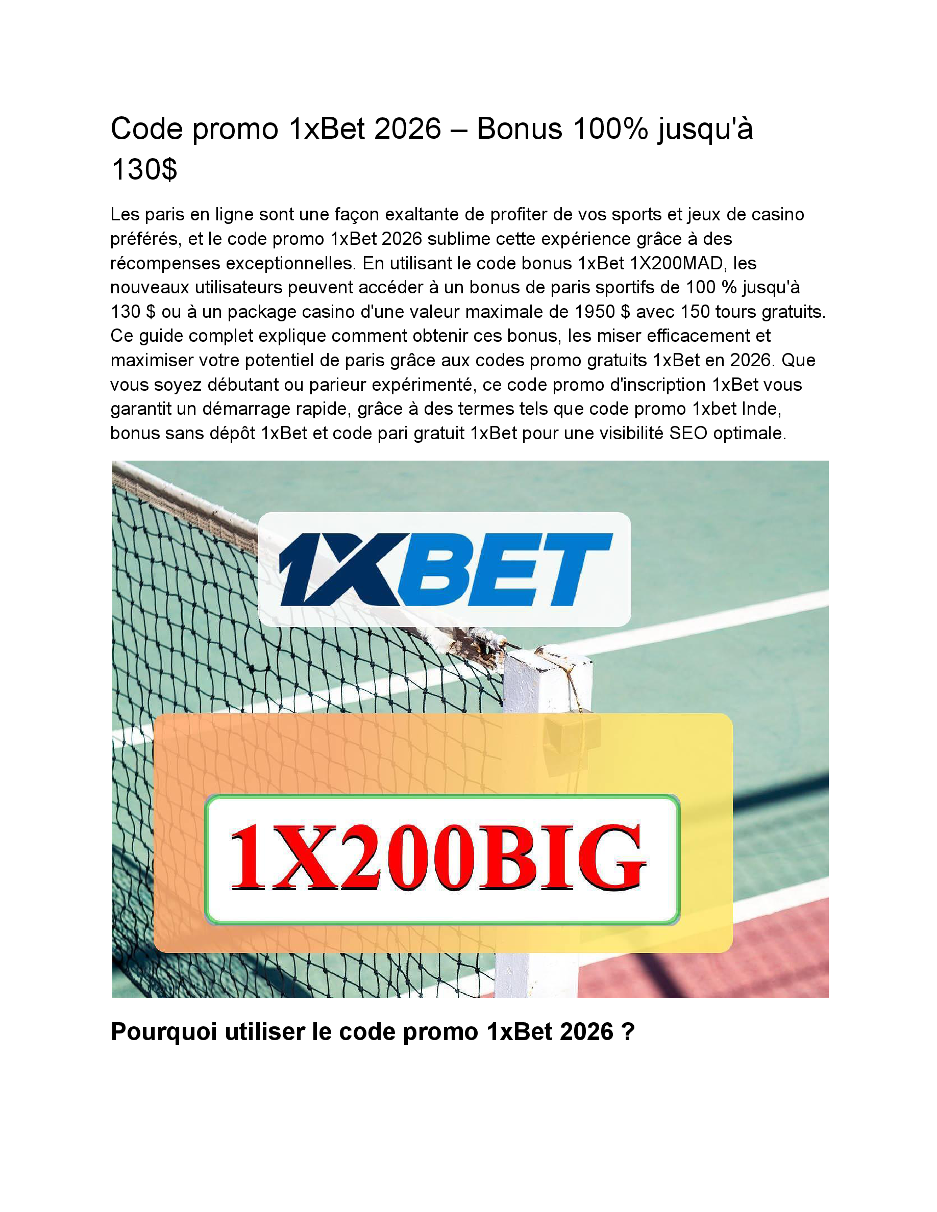 Code Promo 1xBet _ 1X200MAD - Bonus Gratuit
