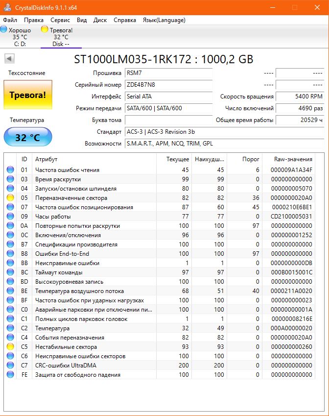 CrystalDisk видит HDD и видит там проблему_для руборд_02.08.2023