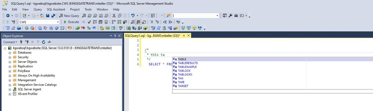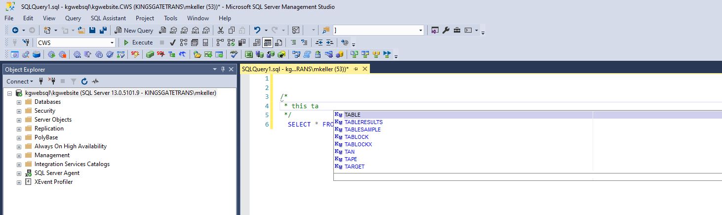 SQL Assistant Comment with Intellisense