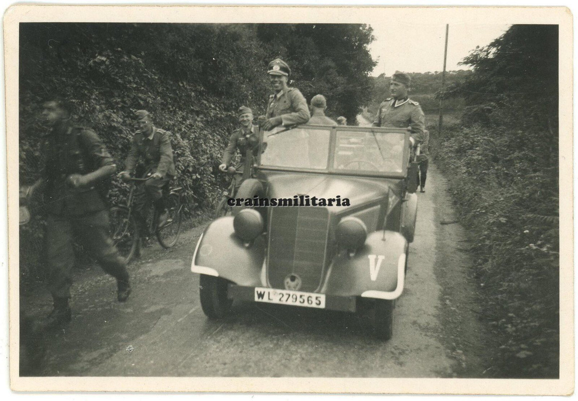 Orig. Foto 293.ID Offizier Kübelwagen Pkw bei Lamballe Bretagne Frankreich 1940