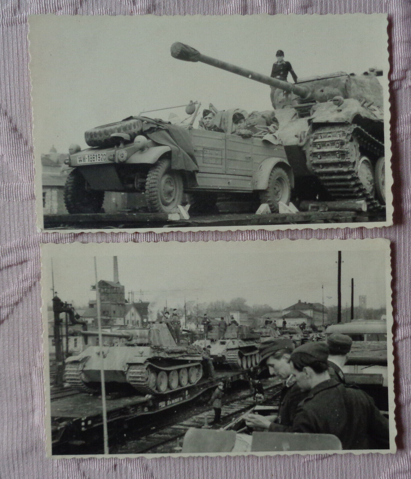 2 orig. Foto, Panther Panzer und Kübelwagen mit Kennung WW2