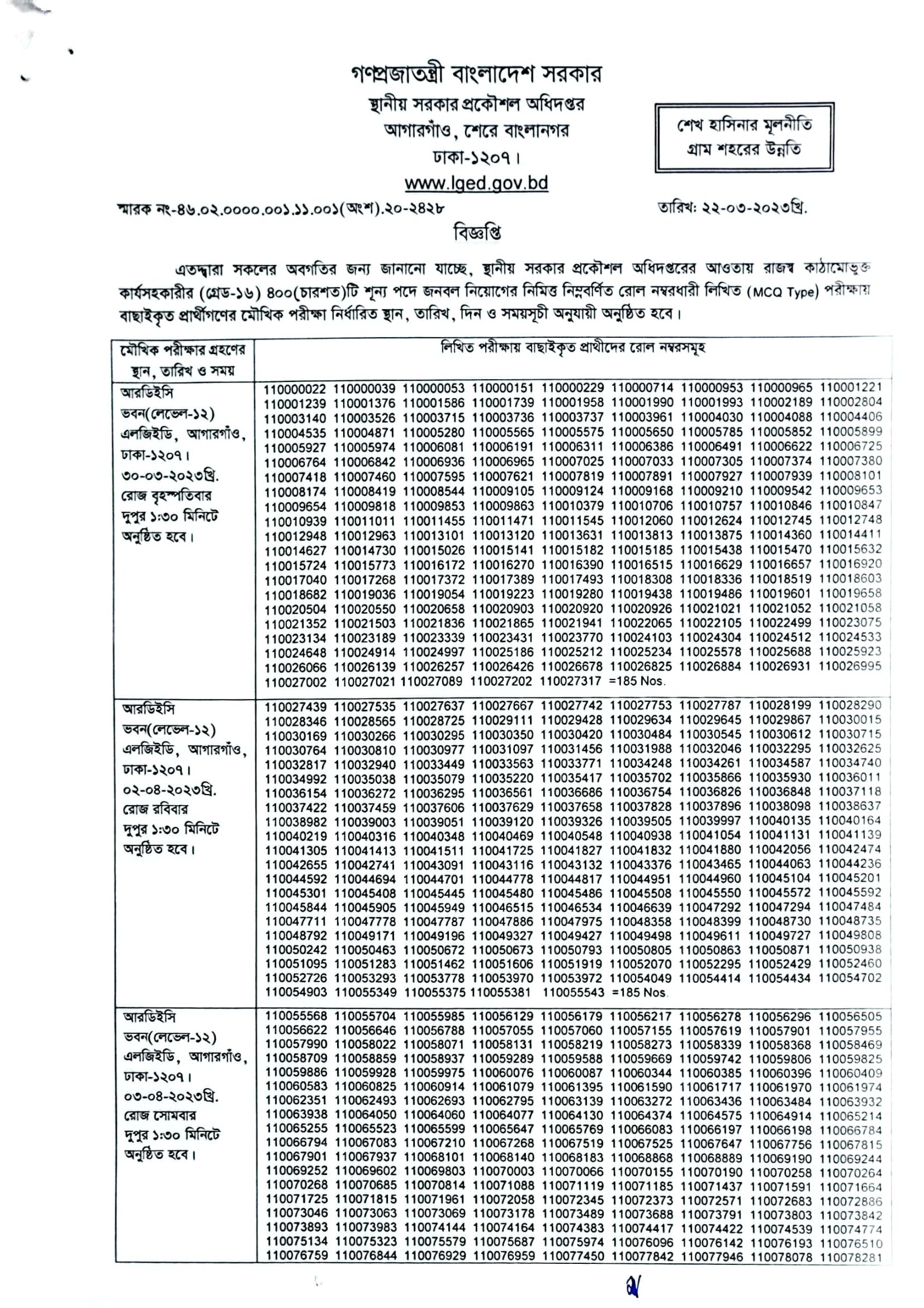 LGED Work Assistant Viva Schedule 2023 PDF-1