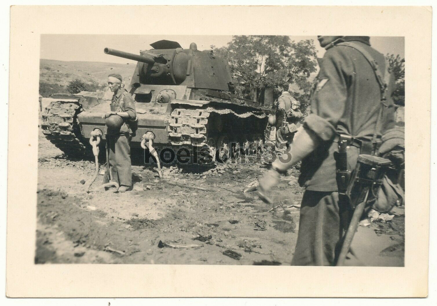 Grenadiere am russischen KW-I Panzer ! Beute Tank 371. ID Kalmüc