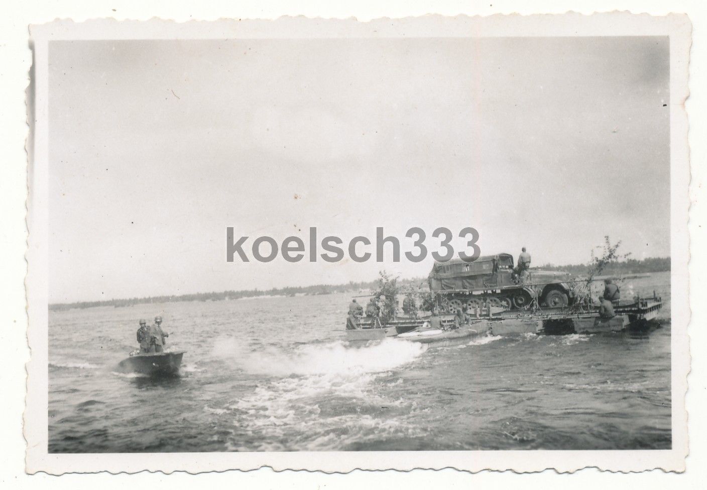 Foto Panzer Halbkette auf Ponton Fähre ! Pionier