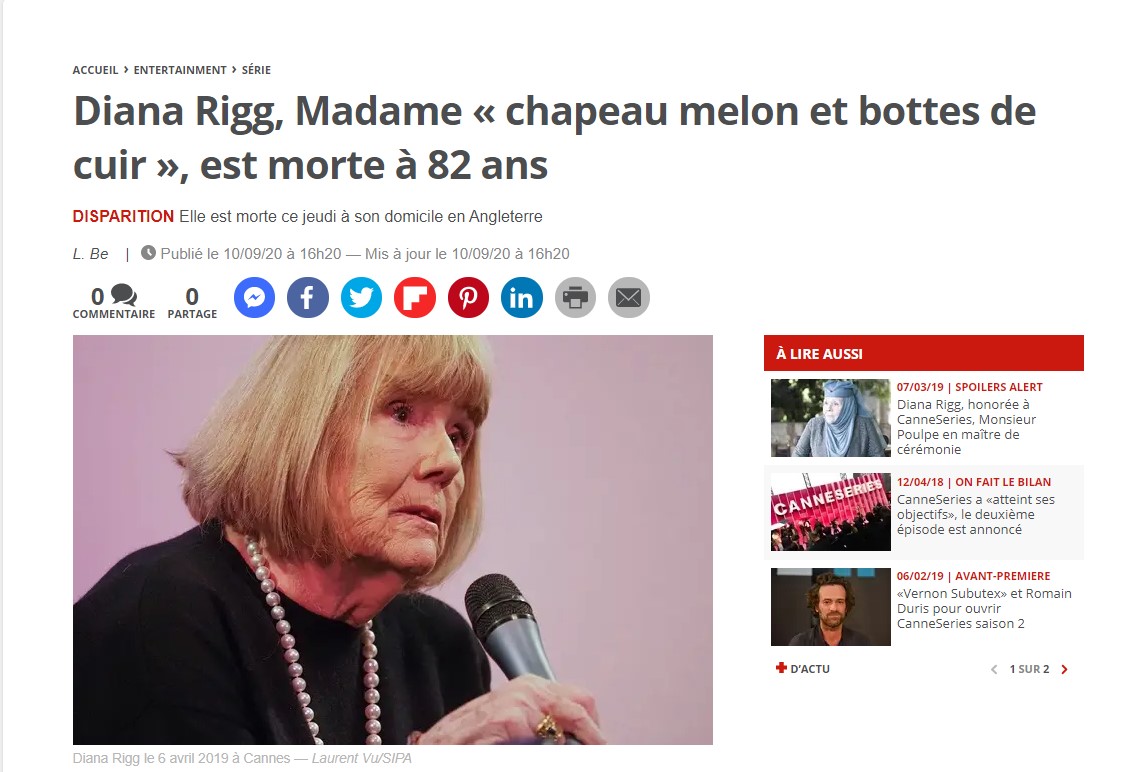 Décès Diana Rigg