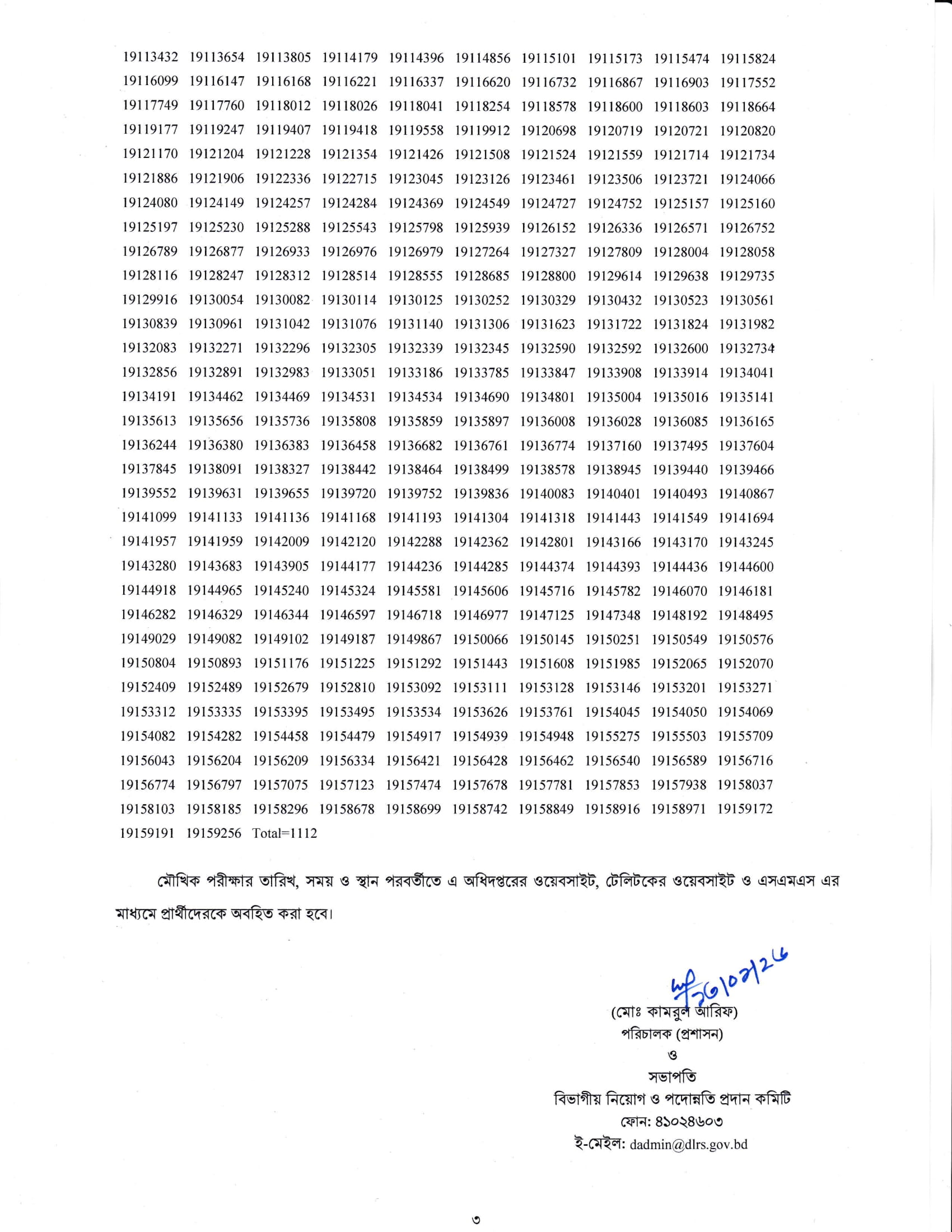 DLRS Practical Test Result 2026 PDF 3