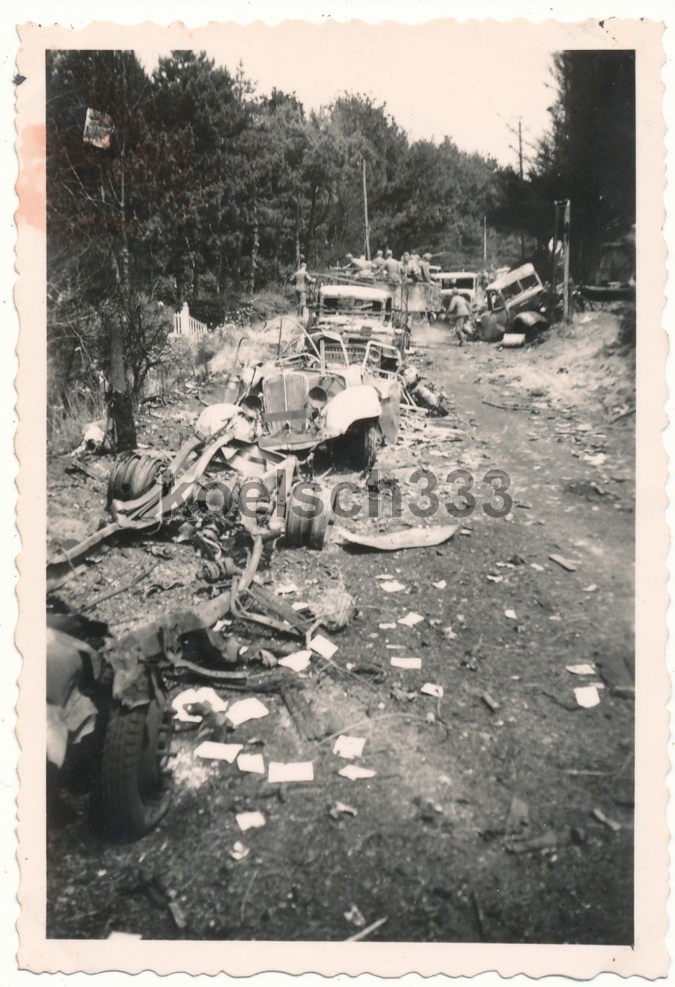 Foto vernichtete französische Armee Kolonne LKW