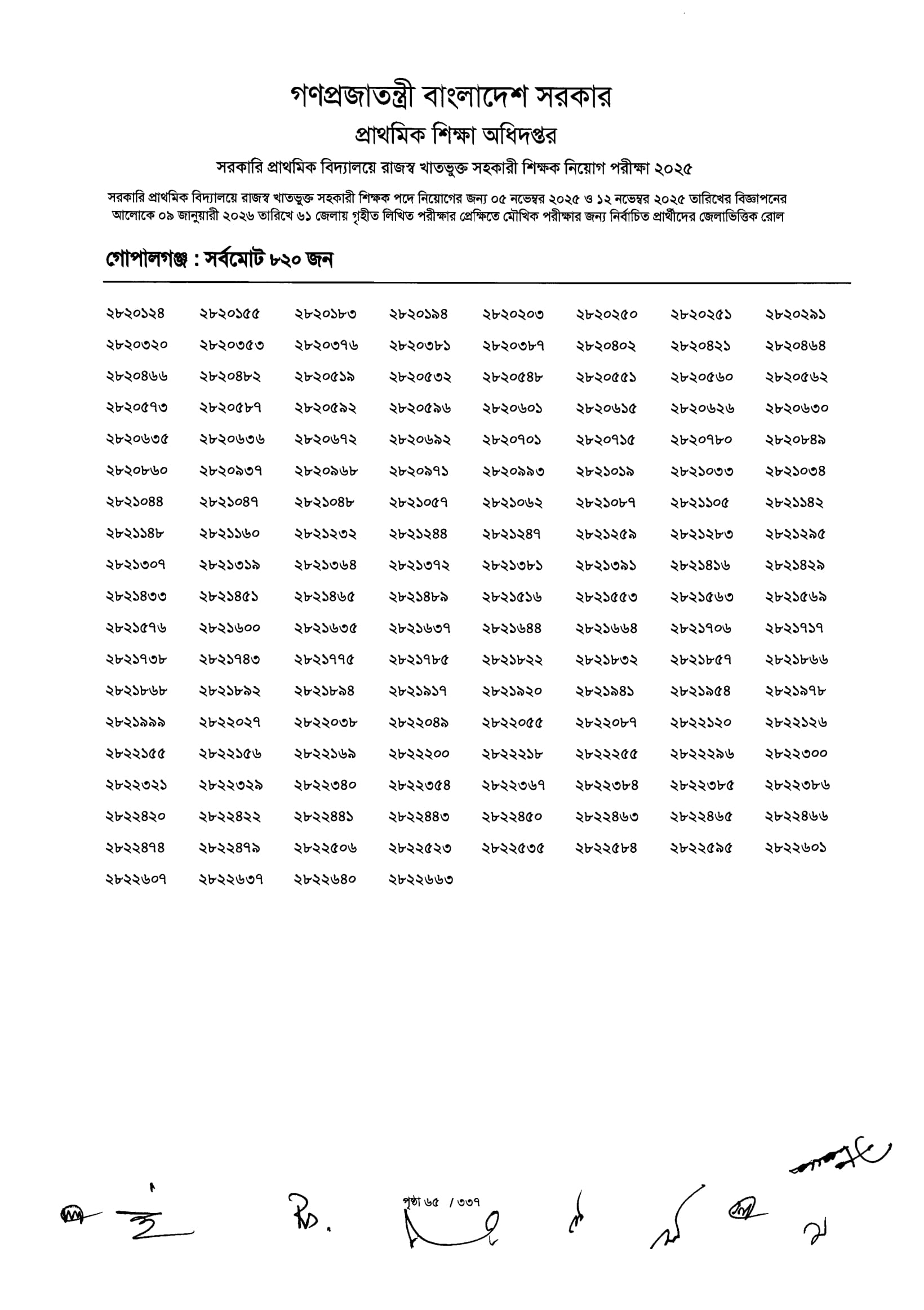 Primary MCQ Exam Result 2026 PDF 067