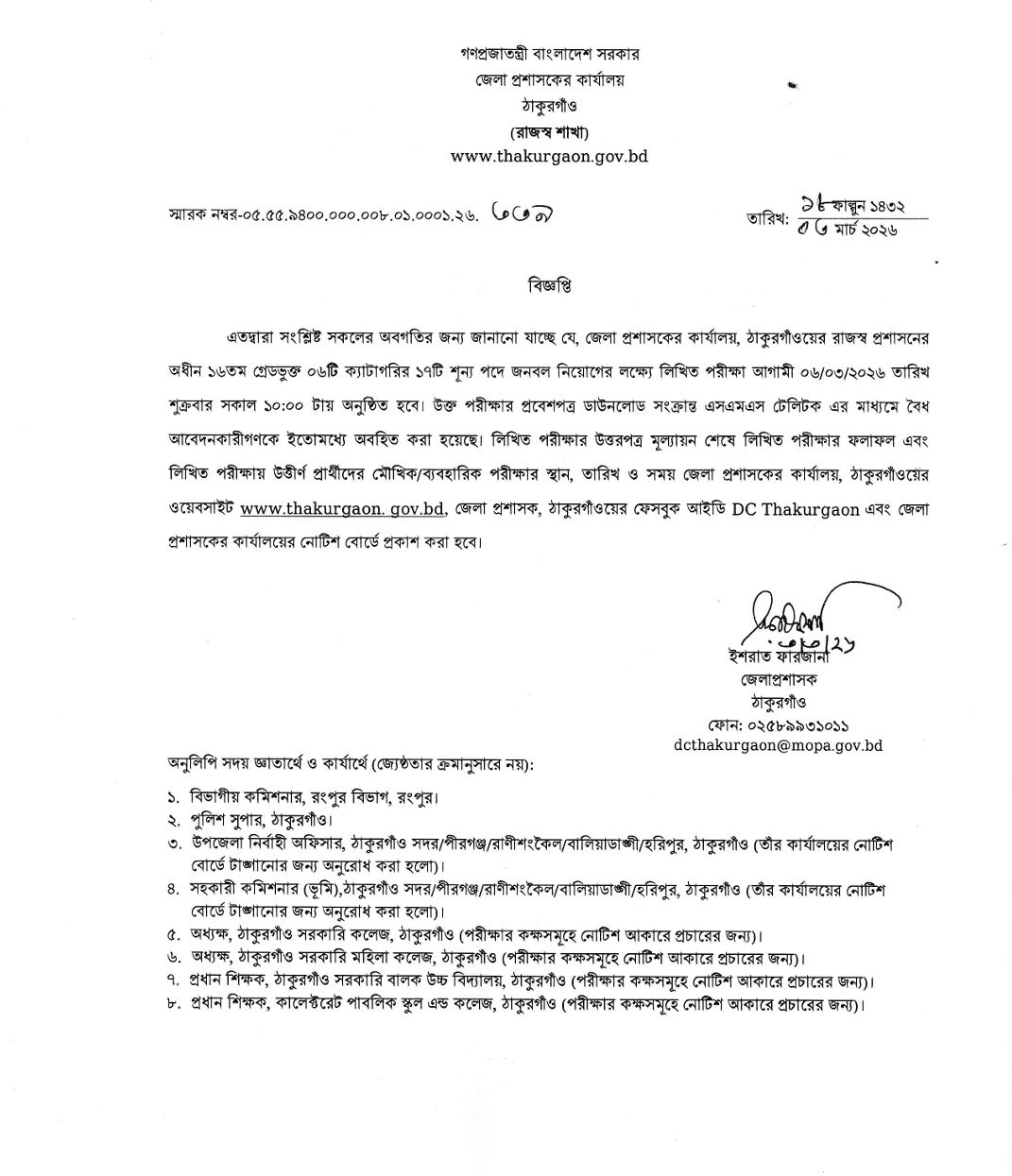 DC Office Thakurgaon Exam Date