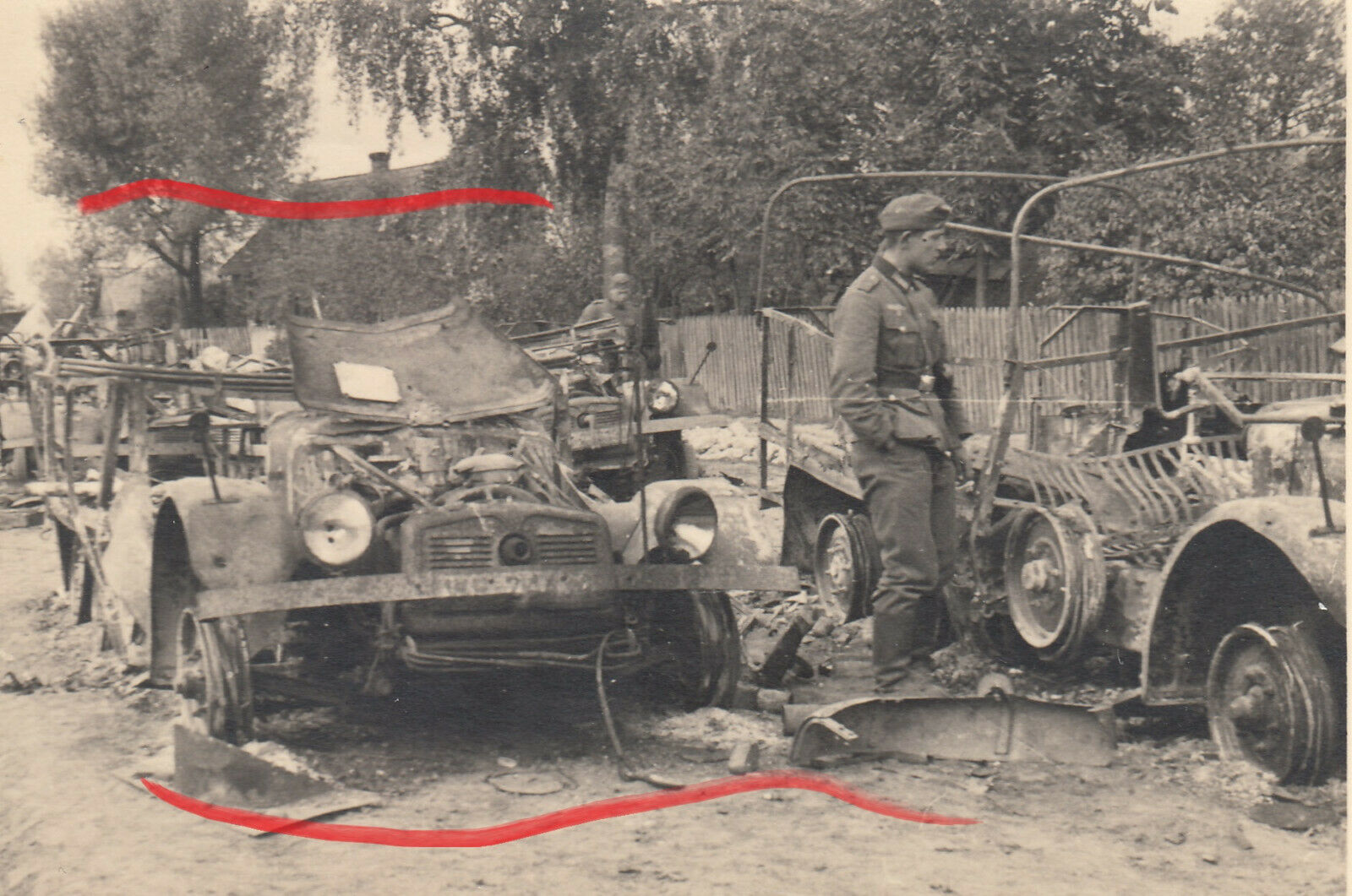 Foto WH Soldaten 1939 zerst. Kolonne Polen Łomna b. Modlin PKW E