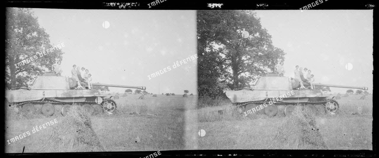 Normandie - Environs de L'Aigle - les enfants Grimault s’amusent sur un char Panther abandonné (3)