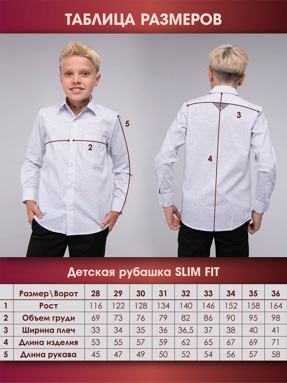 Таблица размеров детский SLIM FIT