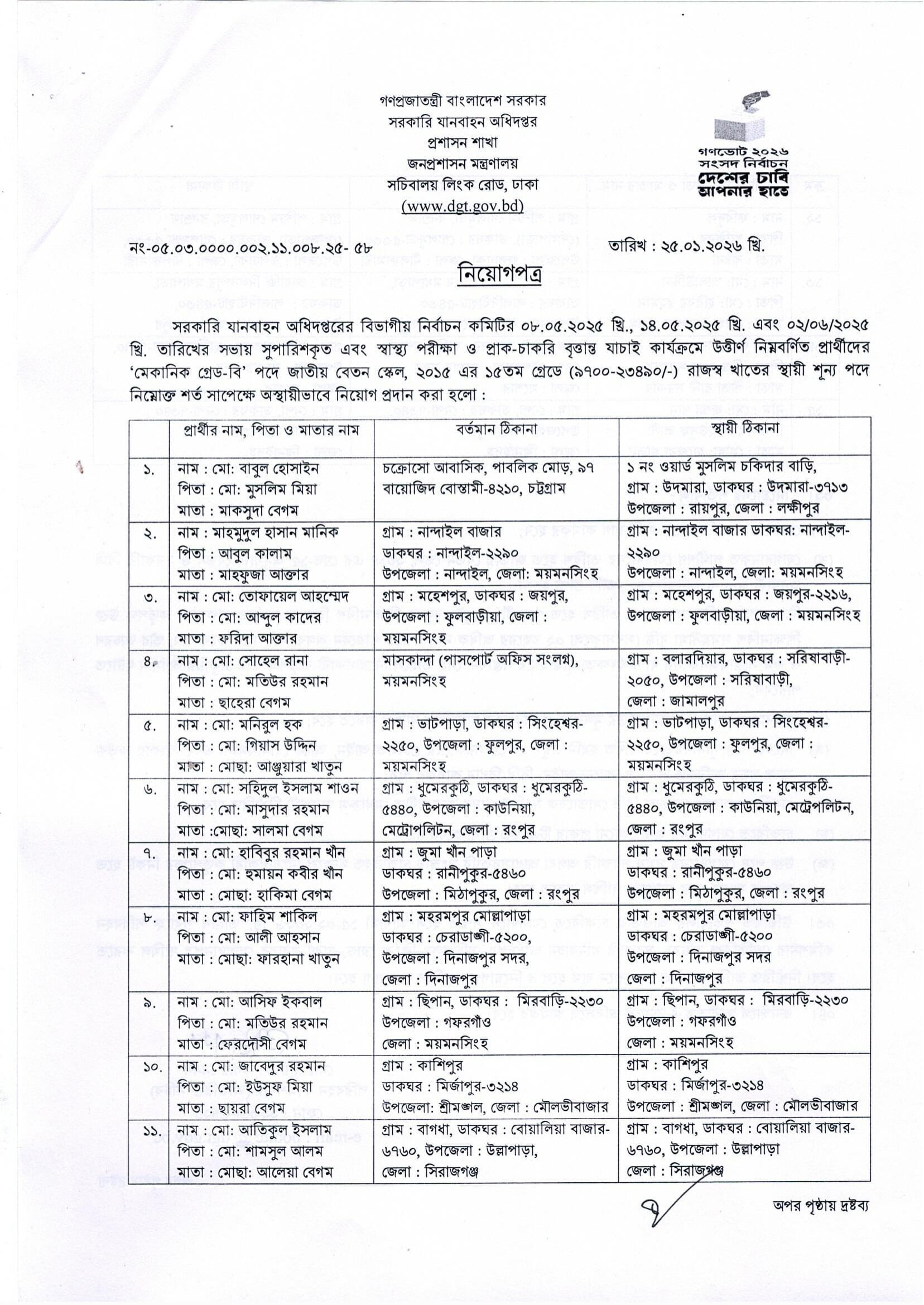 DGT Mechanic Job Appointment Letter 2026 PDF 1