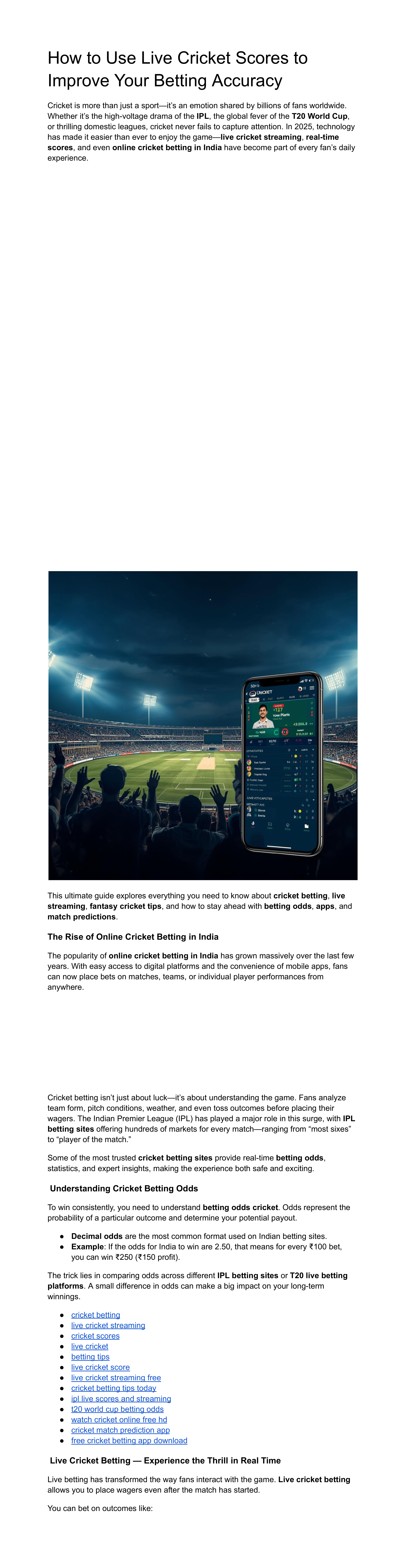 How to Use Live Cricket Scores to Improve Your Betting Accuracy