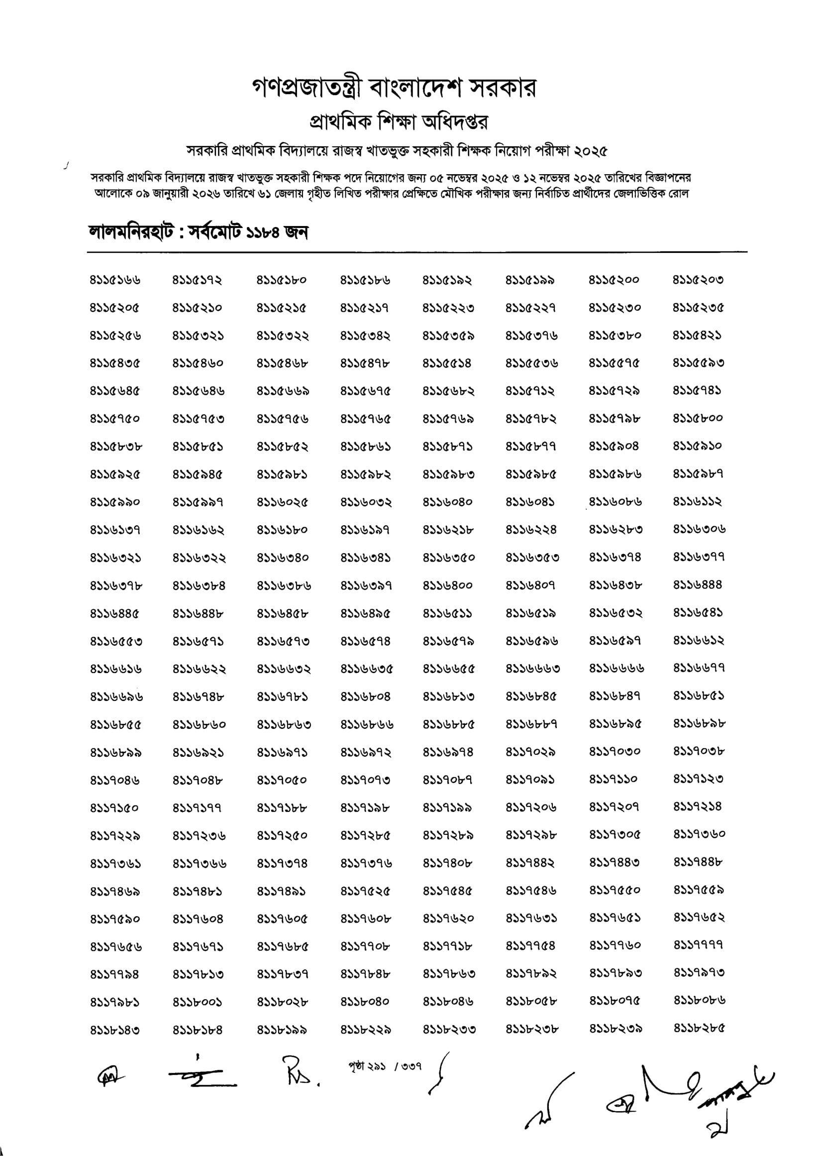 Primary MCQ Exam Result 2026 PDF 293