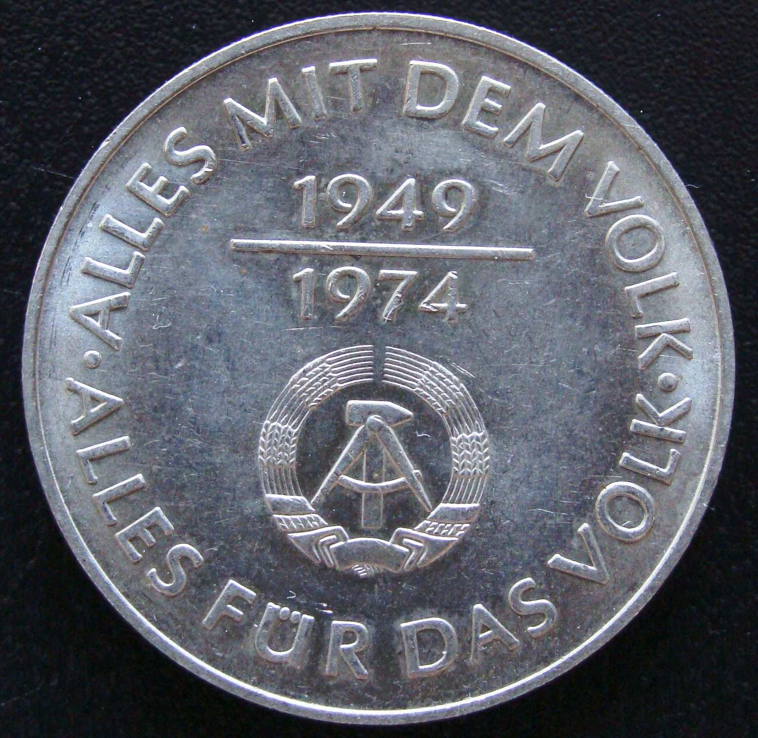 RDA. 10 Marcos (1974, 25 Aniversario RDA) - anv
