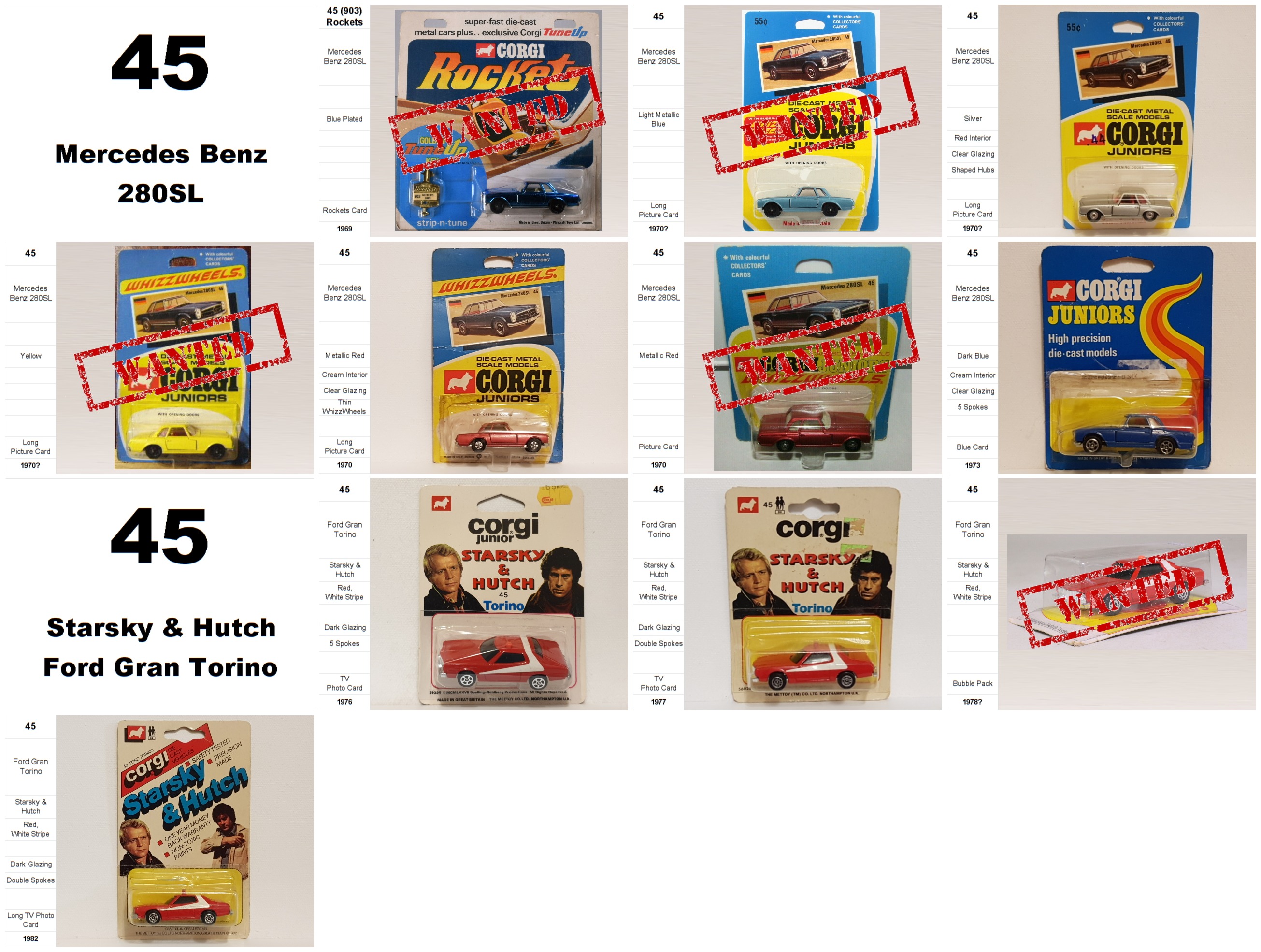 0045 Juniors-45-Mercedes Benz 280SL 45-Starsky & Hutch Ford Gran Torino