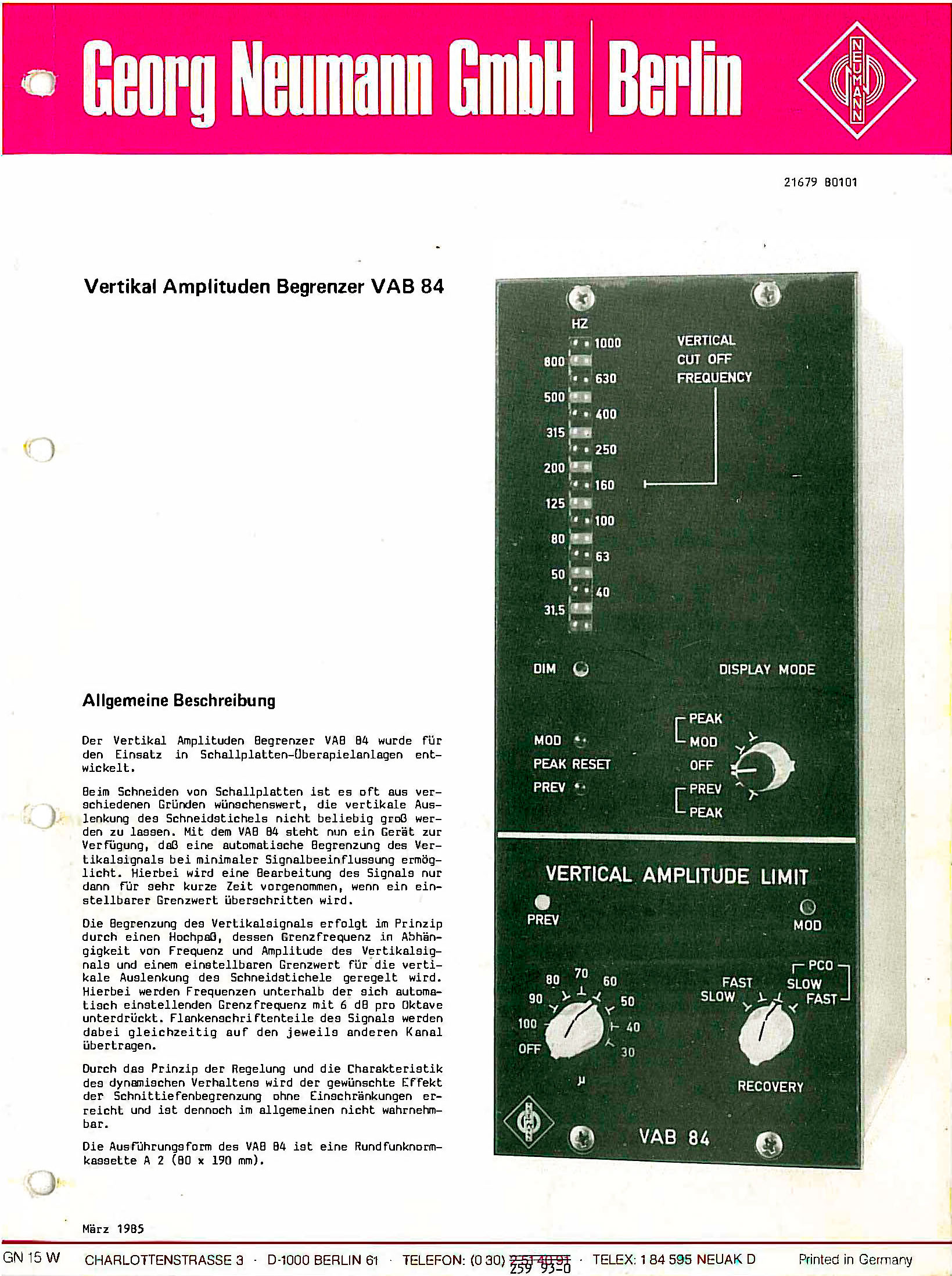 Neumann Vertikal Amplituden Begrenzer VAB 84