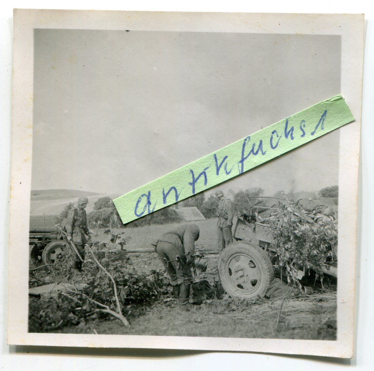 W-Feld-Div.Soldaten mit Mpi-40 am Geschütz nach einem Front-Gefecht 1944
