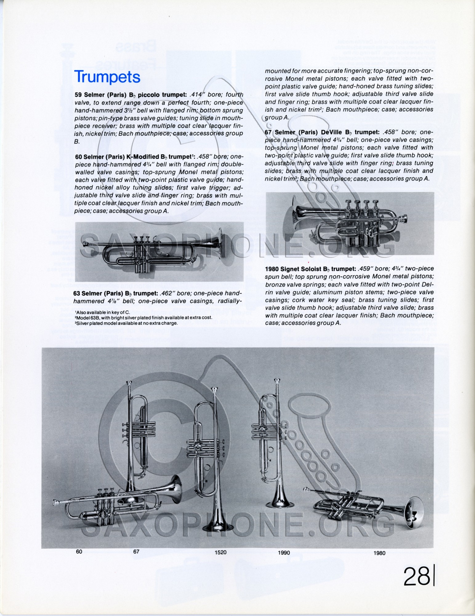 Selmer 1971 trumpets brochure descriptions