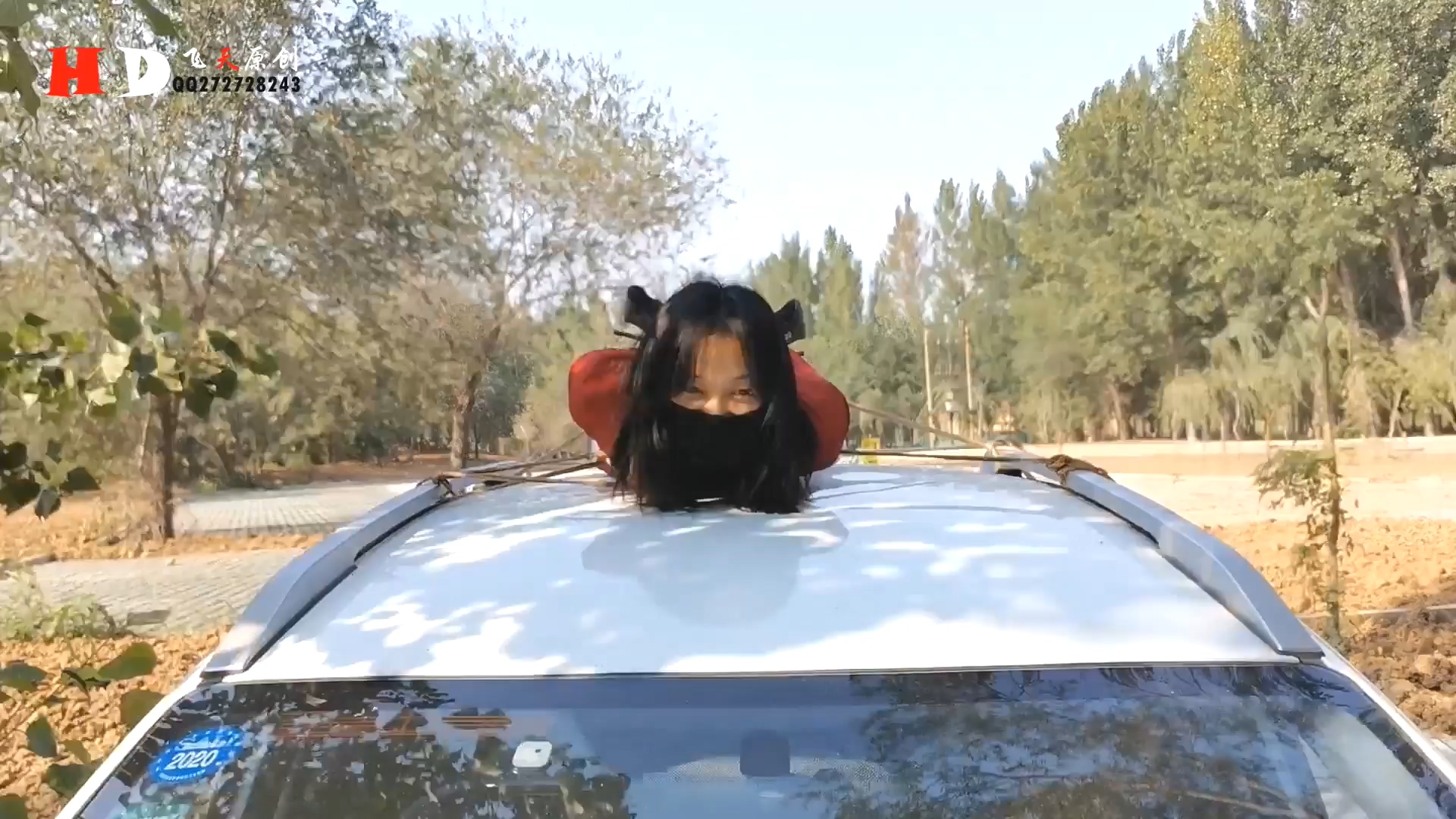 飞天原创 云儿国内第一车顶驷马逛街 公园里跪立行走股绳.mp4_20191003_132714.601