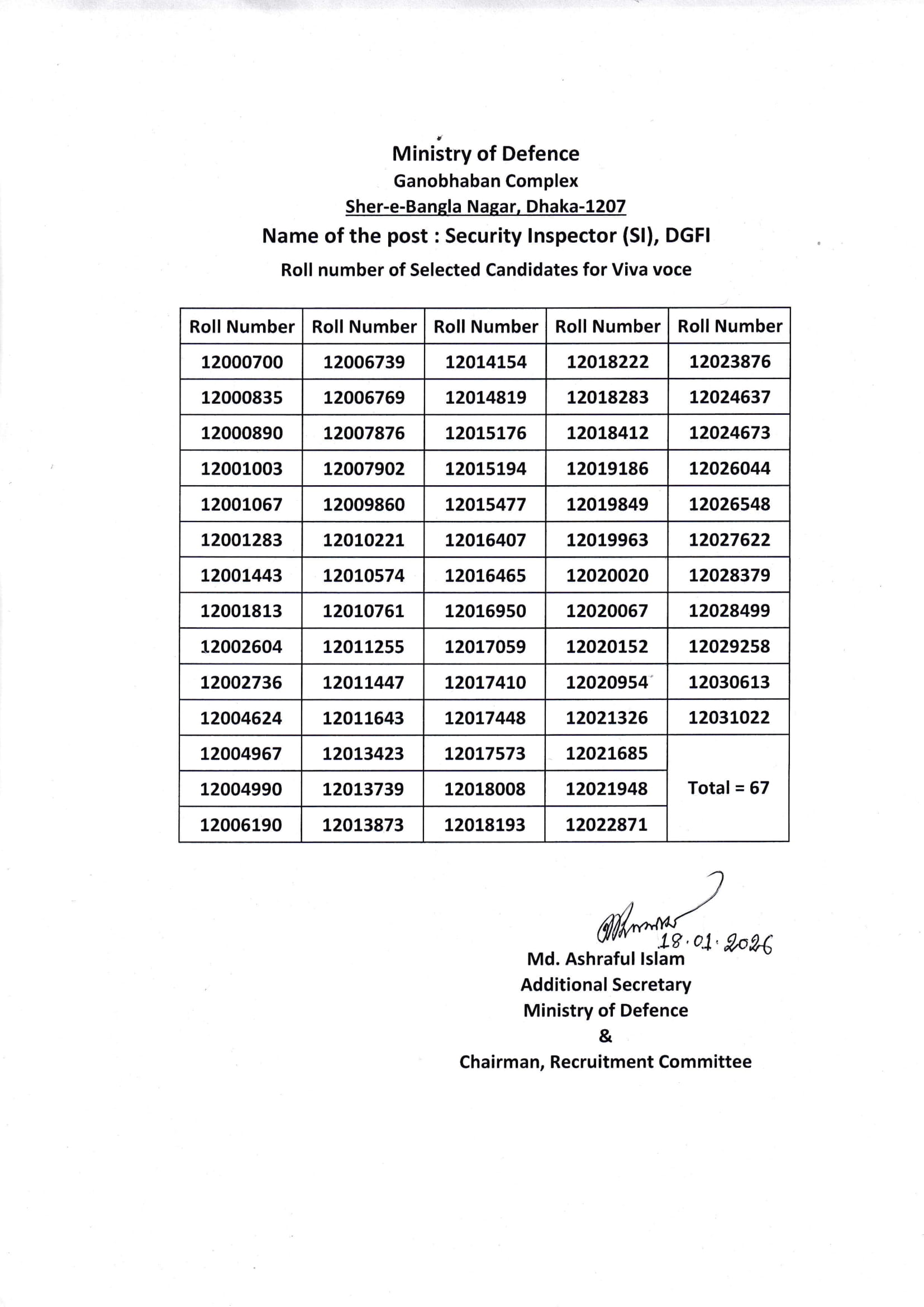DGFI Security Inspector Exam Result 2026 PDF 1
