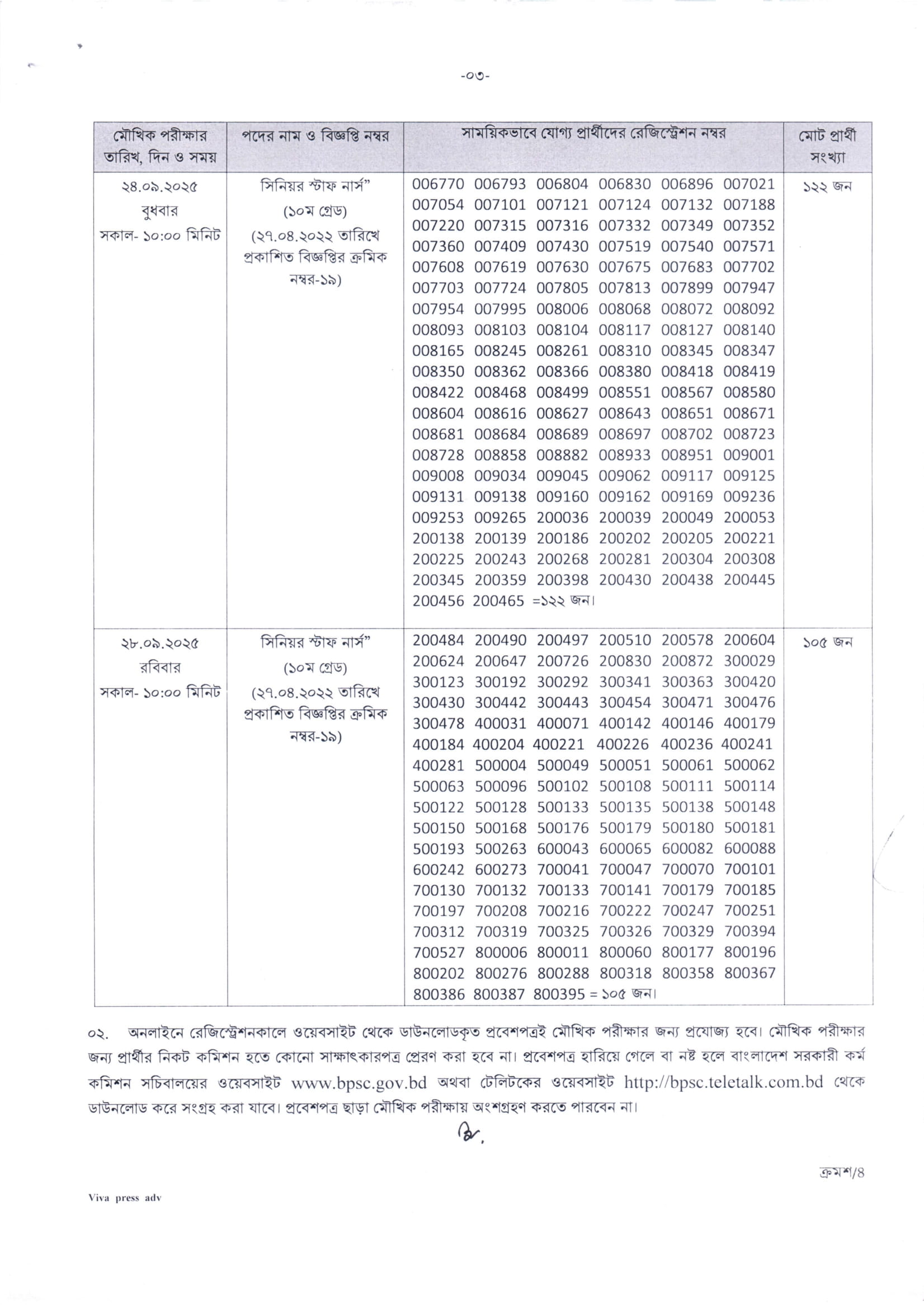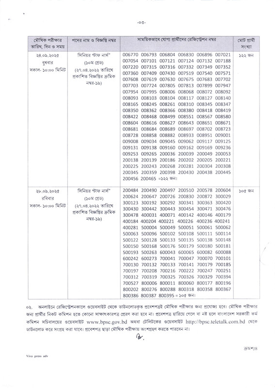 BPSC Non-Cadre Senior Staff Nurse Viva Date 2025 PDF-3