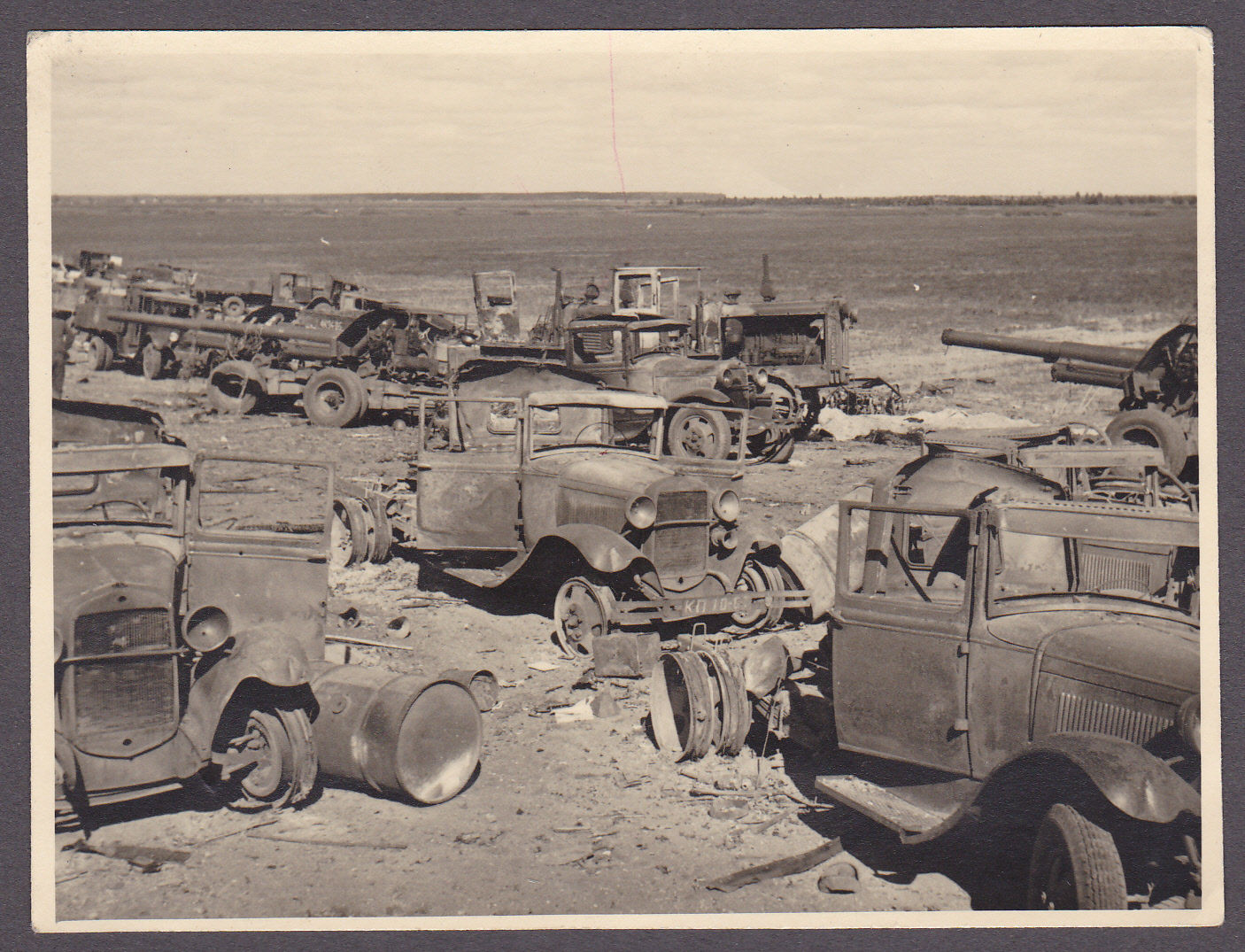 Foto 2.WK.zerstörte Geschütze und Fahrzeuge