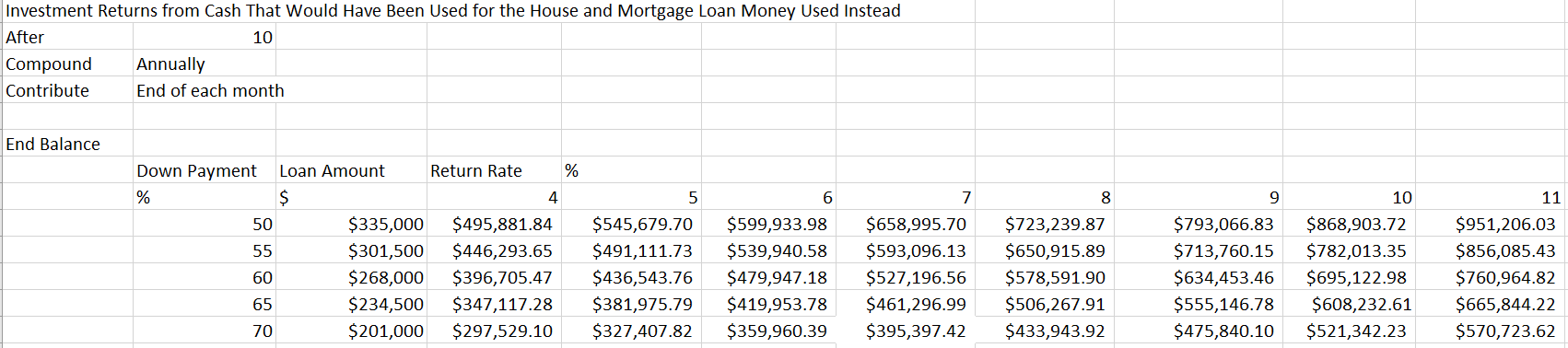 2 - Investment Returns From Cash That Would Have Been Used for the House and Mortgage Loan Money Use