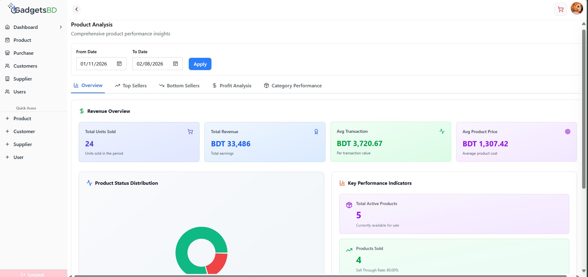 product dashboard