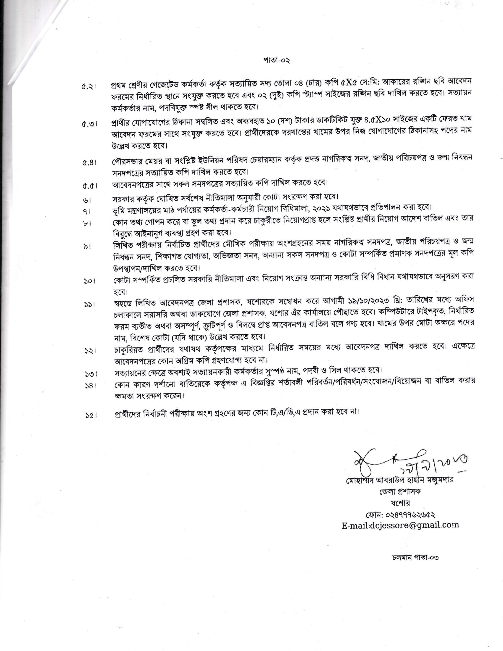 DC Office Jessore Job Circular 2023 PDF-2