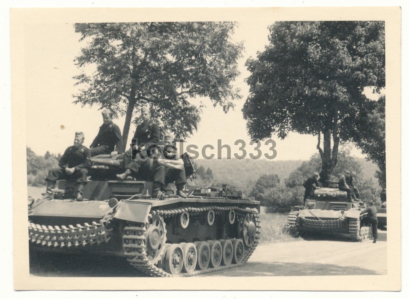Foto Panzermänner auf Panzer III Kampfwagen an der Westfront in