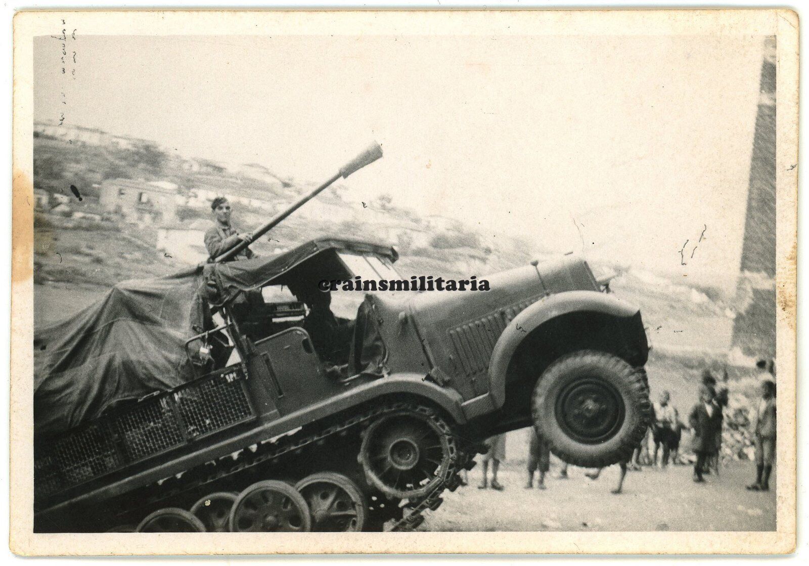 Orig. Foto SdKfz Halbkette mit 3,7 cm Geschütz PaK Flak in SALONIKI Griechenland