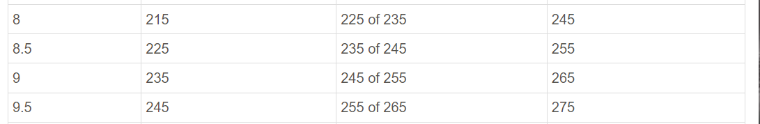 banden maten tabel