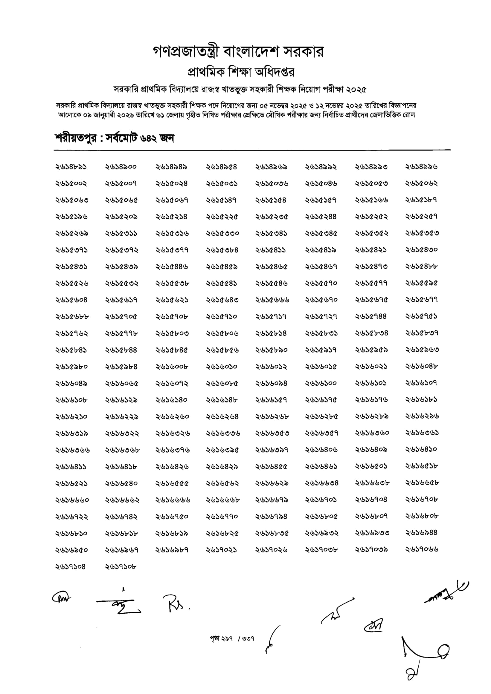 Primary MCQ Exam Result 2026 PDF 299