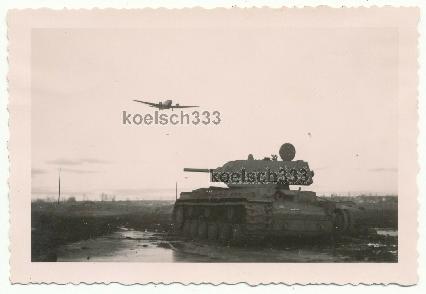 Foto Ju 52 Flugzeug über russischem KW I Panzer Wrack