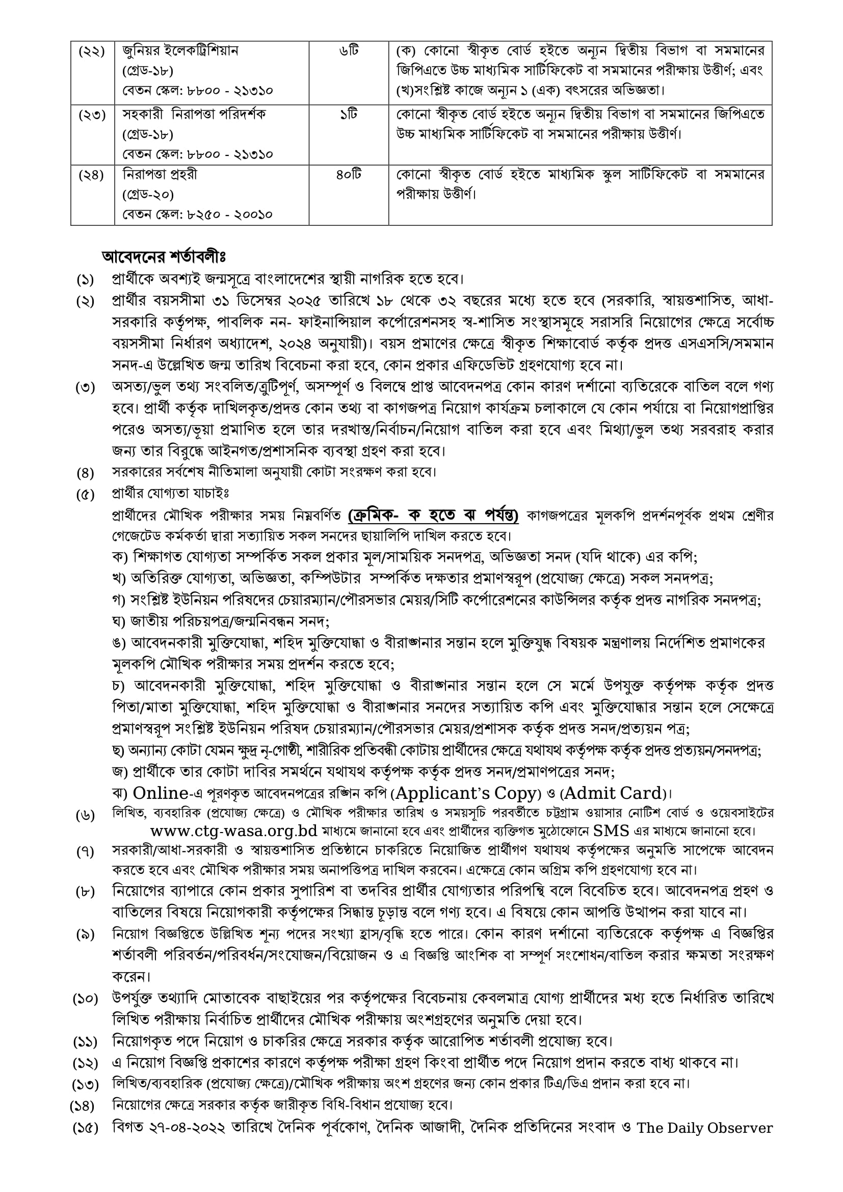 CWASA Job Circular 2025 PDF 3
