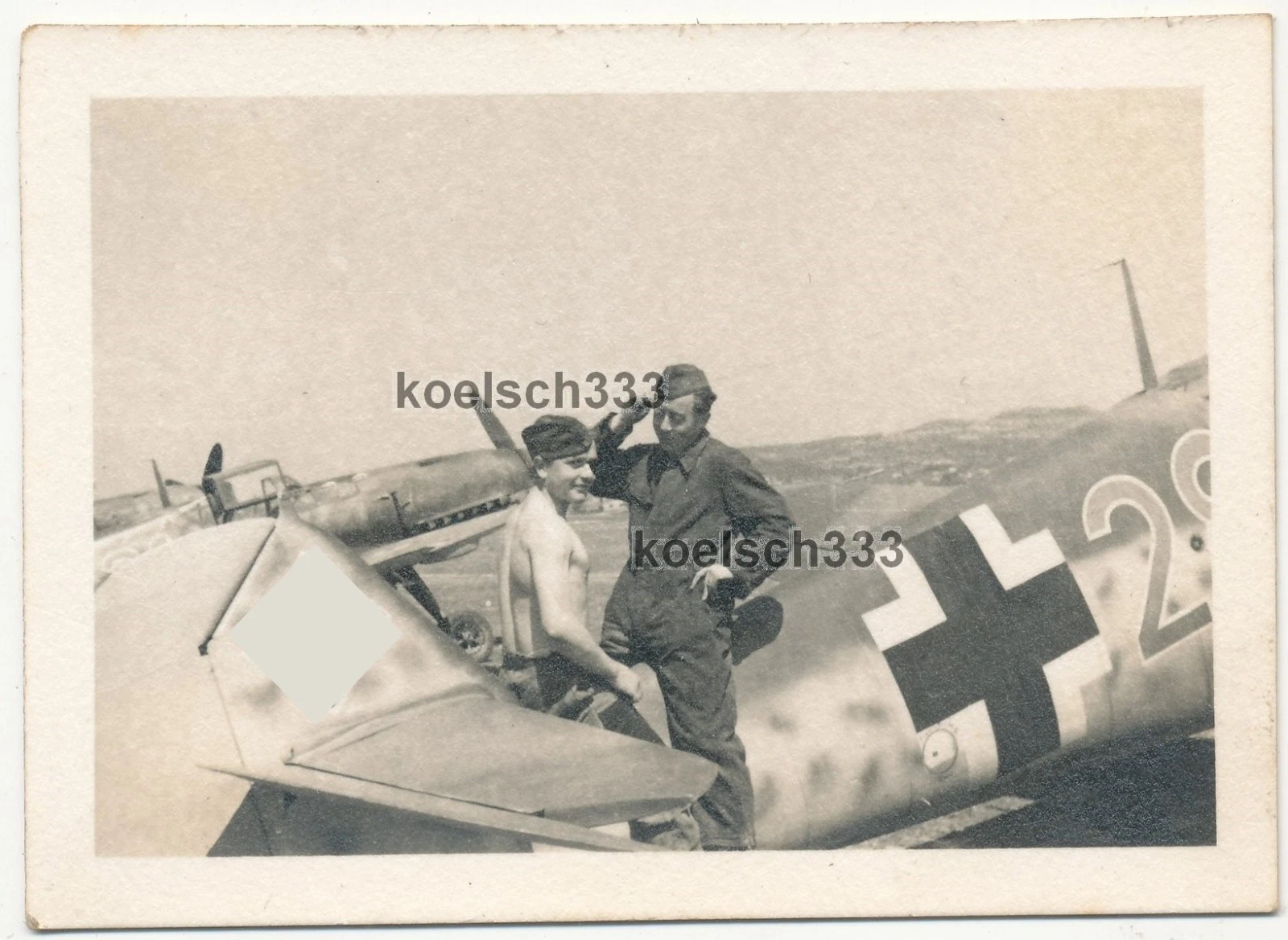 Foto Messerschmitt Bf 109 Flugzeuge vom Jagdgeschwader 27 auf Feldflugplatz