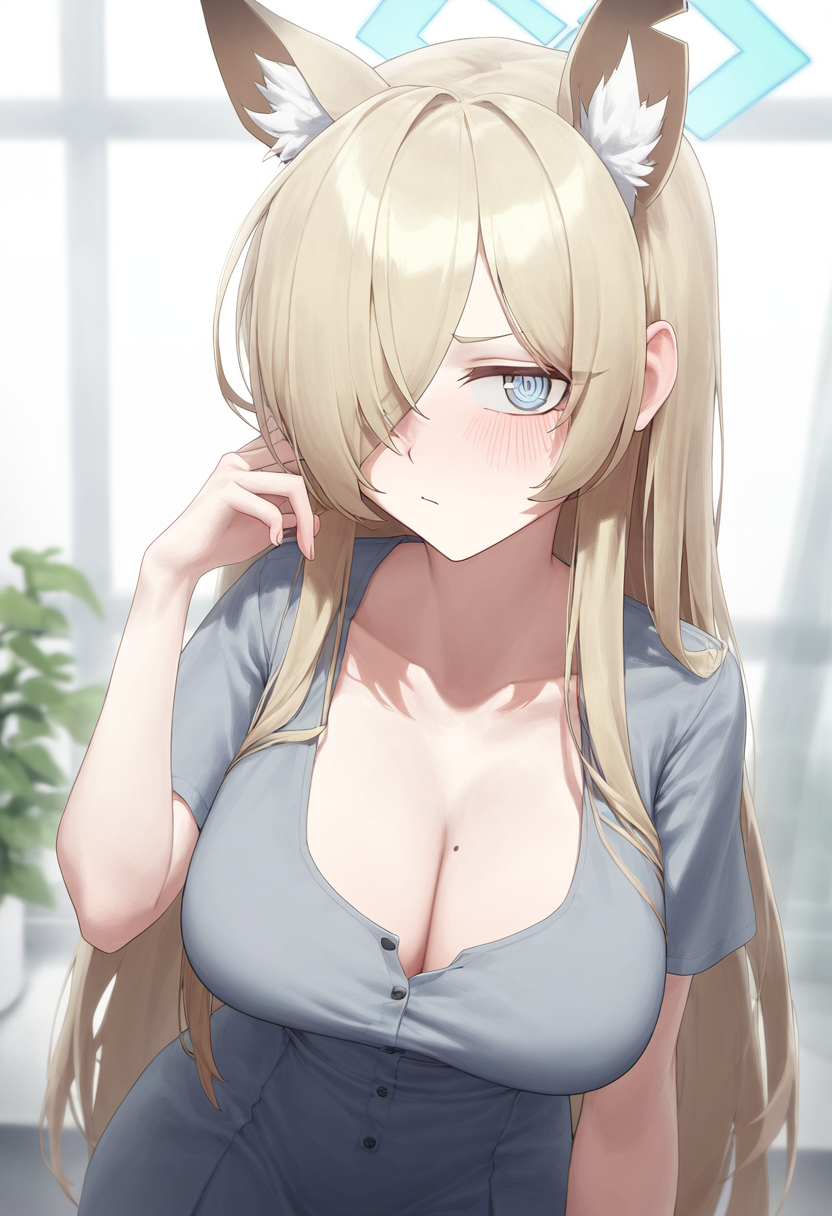 depth of field, 1girl, kanna (blue archive), collarbone cleavage, short sleeves, s-181019368
