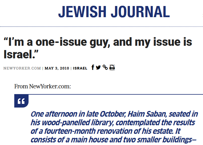 Donor_Haim_Saban_One_Issue_Israel