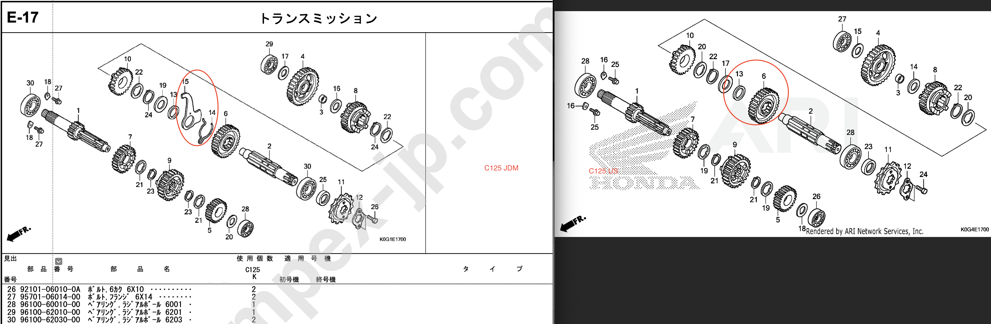 C125 US vs JDM transmission