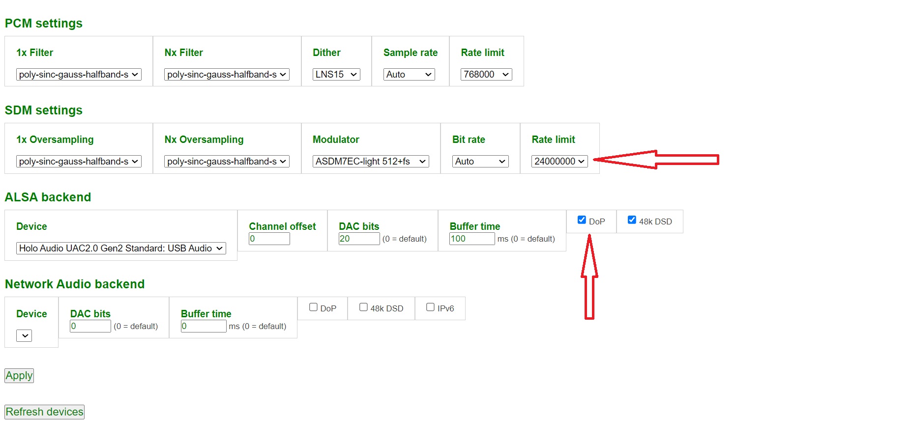 HQPe parametrage DOP coché