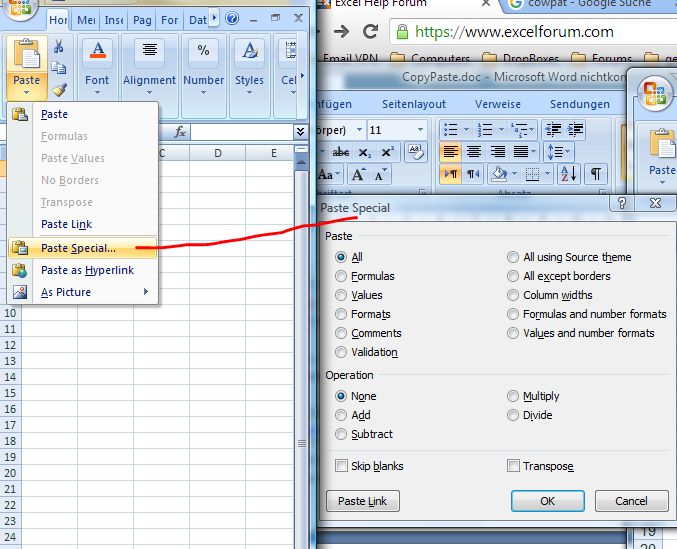 Paste Special further options