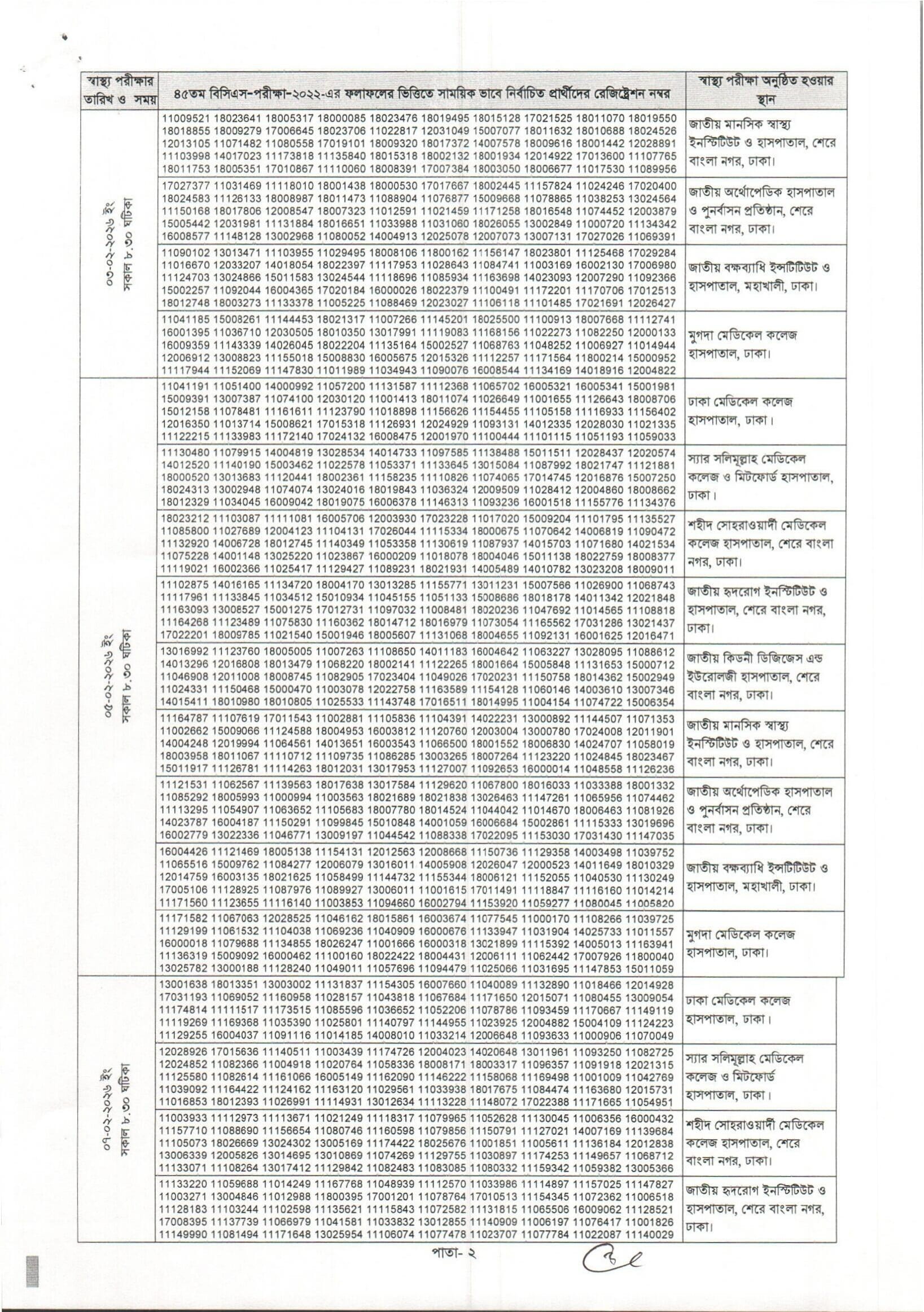 45th BCS Health Test Date 2026 PDF 2
