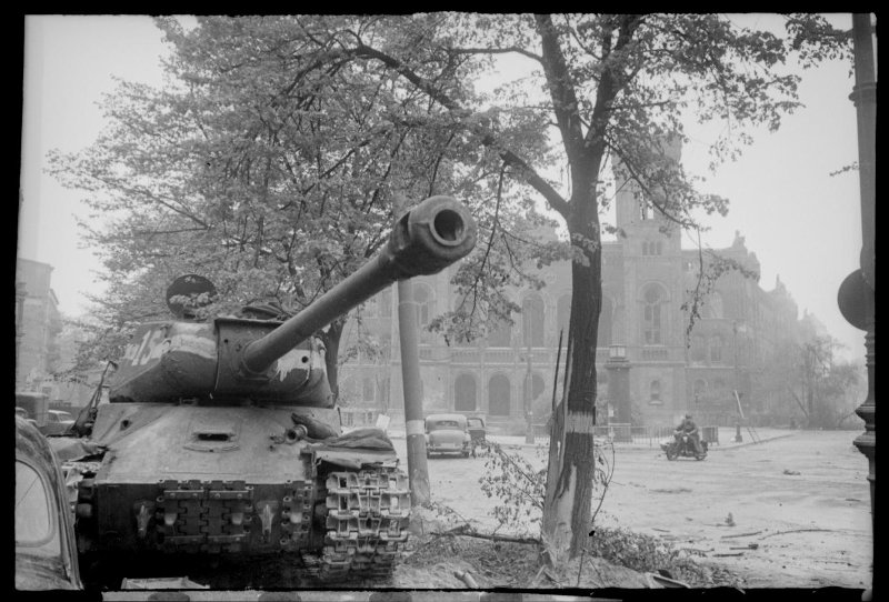 1-й Белорусский фронт. Советский танк ИС-2 (№15) стоящий на улице Берлина.