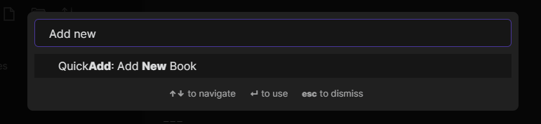 QuickAdd Add New Book Command Palette